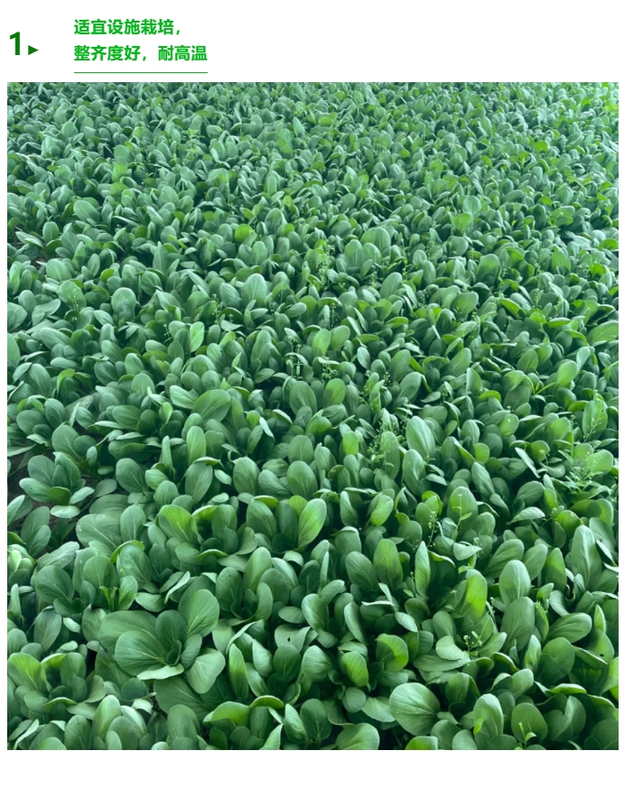 設(shè)施栽培首先品種“國(guó)夏3號(hào) ” 是京研種業(yè)育成的雜交一代青梗菜品種。植株長(zhǎng)勢(shì)較旺,株型