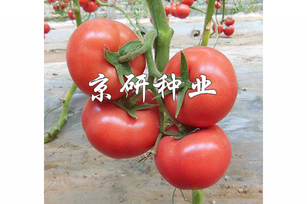 粉果番茄雜交種,無限生長型,植株節(jié)間短,葉色淺綠,中早熟,大果,果實圓形,每穗坐果數(shù)3-5個,單果重280-350克。具有抗番茄黃化曲葉病毒病Ty1和Ty3a基因位點、抗根結(jié)線蟲病Mi1基因位點,適合春秋保護地種植。栽培管理同常規(guī),每穗3個果為宜。
