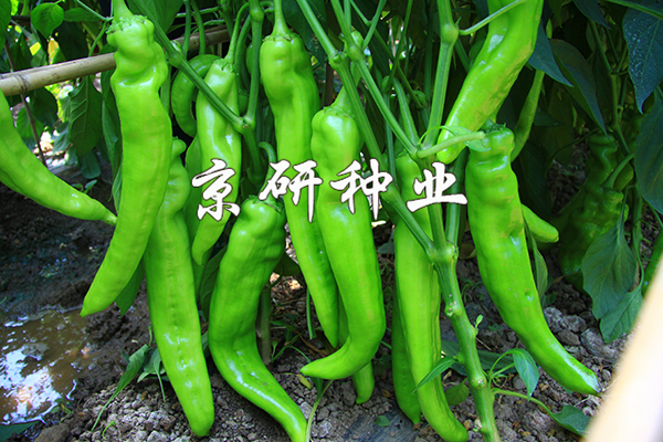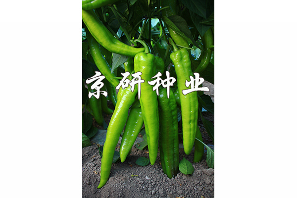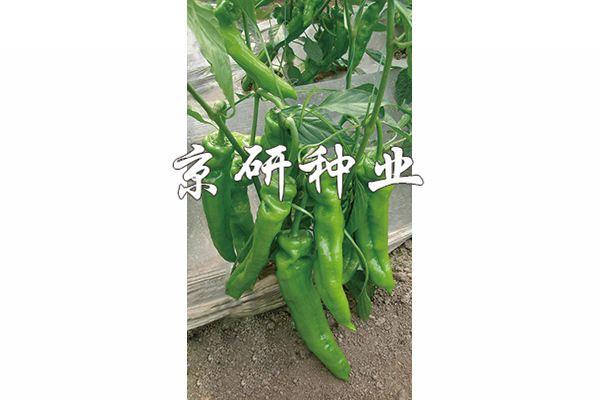 中早熟、豐產(chǎn)辣椒F1,無限生長(zhǎng)型;耐低溫,低溫寡照下座果優(yōu)秀,持續(xù)座果能力強(qiáng);膨果速度快;果實(shí)特長(zhǎng)牛角形,果基有皺,果型順直。果型為26-28×5.5厘米,單果重100-150克;果皮黃綠色,耐貯運(yùn);較耐熱耐濕,抗病毒病和青枯病。適于華北、西北及東北地區(qū)保護(hù)地種植。