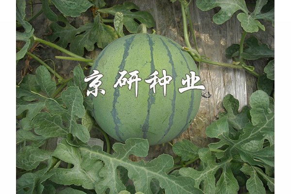 最新育成的早熟、優(yōu)質(zhì)、耐裂西瓜新品種。該品種果實(shí)發(fā)育期30天左右,全生育期90天左右。植株生長(zhǎng)勢(shì)強(qiáng),座果性好。果實(shí)短橢圓形,深綠底覆蓋墨綠齒條紋,有果霜,外型美觀。單瓜重6公斤左右,中心可溶性固形物含量高的可達(dá)12%以上,大紅肉,剖面均勻,不易水脫,肉質(zhì)脆爽,口感佳。皮薄,耐裂,耐儲(chǔ)運(yùn),破損率低,商品率高。適于早熟、優(yōu)質(zhì)栽培及遠(yuǎn)距離運(yùn)輸。 主要栽培措施: 1. 選沙壤土種植為佳,并要求底肥充足。 2. 嫁接苗移栽時(shí)以四葉一心以上大苗為好,有利于提高西瓜坐果性。 3. 700株左右/畝,三蔓整枝,以留第二、三道瓜為好,授粉前期注意保溫、增加光照。 4. 果實(shí)成熟期不宜澆水,九成熟采摘為宜。 5. 重茬及保護(hù)地栽培,最好選用“京研”牌京欣砧木系列品種嫁接。 適應(yīng)性: 適合華北、東北、華東、云南等地區(qū)保護(hù)地與露地早春栽培。北京地區(qū)露地播種3月20日-4月10日,請(qǐng)結(jié)合當(dāng)?shù)貧夂蛱攸c(diǎn)、種植方式與供應(yīng)期科學(xué)合理選擇最佳播種期與定植期。